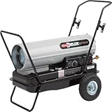 Dynaglo , This Dyna Glo Delux Multi-Fuel Forced Air Heater produces 100,000 to 125,000 BTU to heat areas up to 3000 square feet. This heater is great for use in outdoor construction sites, agricultural buildings, industrial workspaces and more. Easily portable to move from one site to the next. CSA approved; UL approved motor. BTU Output: 100,000 - 125,000, Heating Capability (sq. ft.): 3,000, Volts: 110, Blower (CFM): 520, Heat Settings: Yes, Full Load Run Time (Hours): 11, Fuel Capacity (gal.): 10, Fuel Type: 1K kerosene or diesel, Fuel Consumption (gal./hr.): .95 gal, Igniter: Push-button electric, Thermostat Included: Yes, Cart: Yes, Dimensions L x W x H (in.): 37 1/4 x 16 3/4 x 20 1/4 ...