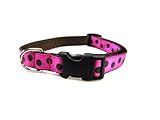- Medium Fuchsia Polka Dot Dog Collar: 3/4" wide, Adjusts 13-20".